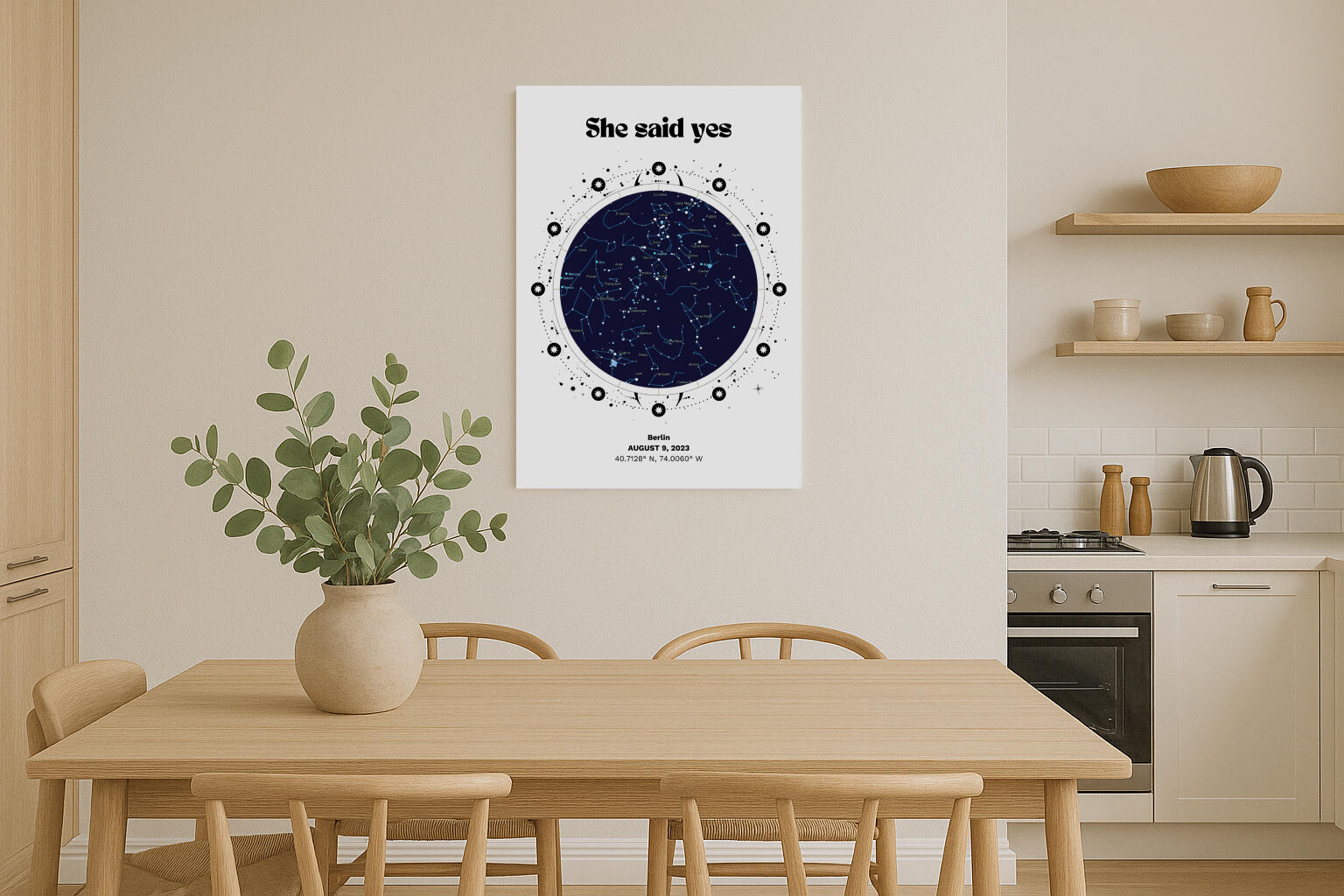 Yes — the star layouts on our posters are astronomically accurate. We use data from reputable astronomical sources to precisely calculate the position of stars and constellations for the exact date, time, and location you choose.